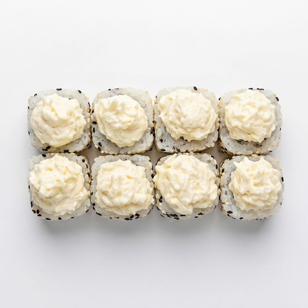 Состав:Рис,Нори,Курица,Помидоры,Кунжут,Сыр плавленый,Чеснок,Майонез.