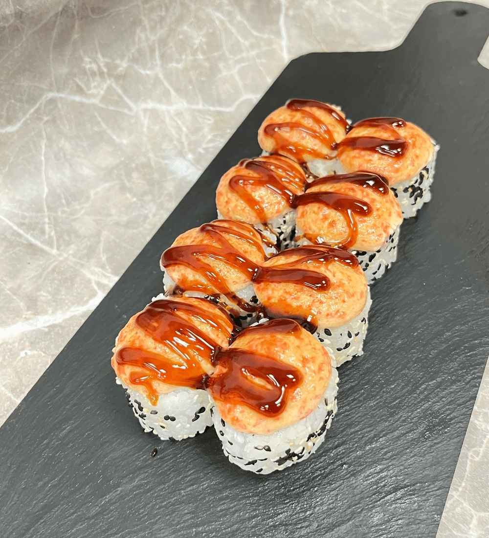 Состав:Рис,Нори,Миди,Огурцы,Кунжут,Терияки,Майонез,Пармезан.