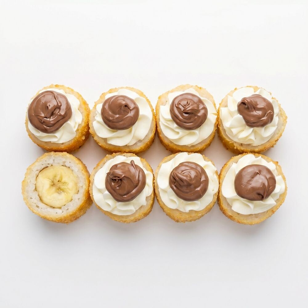 Состав:Рис,Банан,Сыр сливочный,Нутелла,Кляр,Сухари.