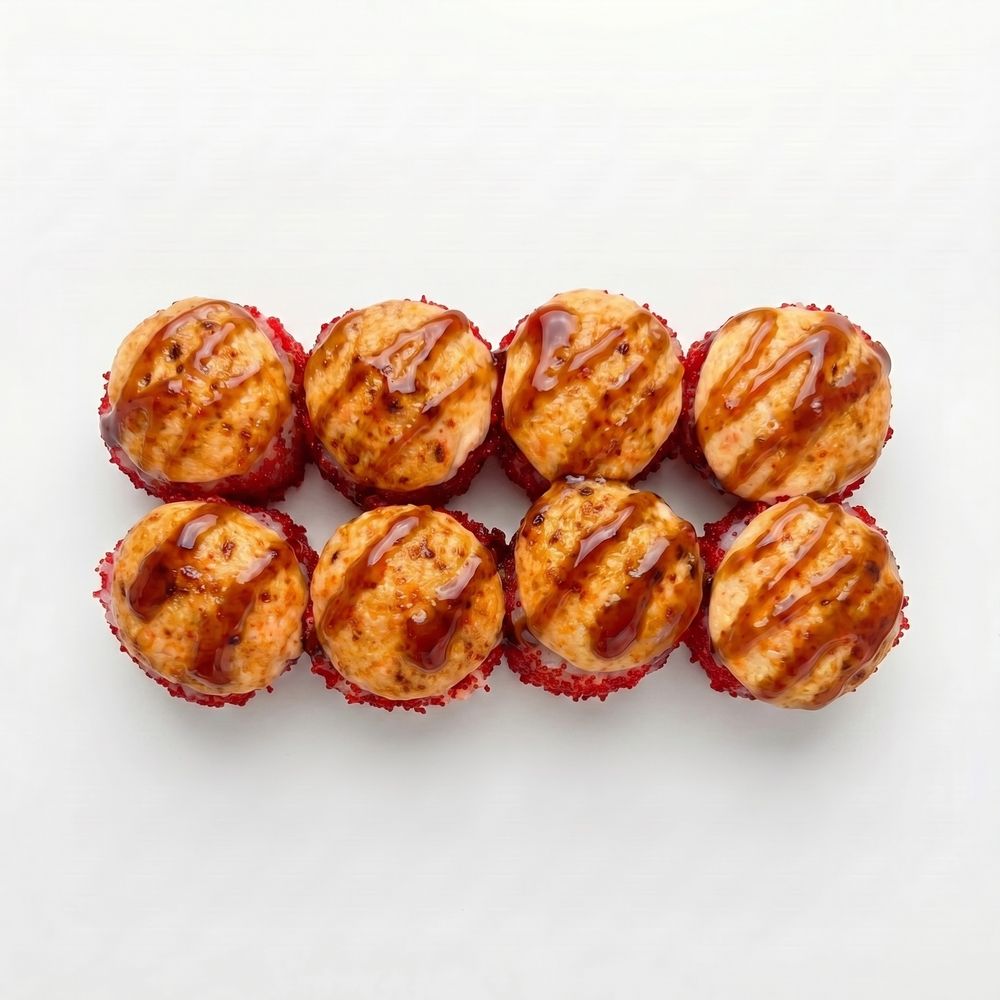 Состав:Рис,Нори,Креветки,Огурцы,Масаго,Терияки,Майонез,Пармезан