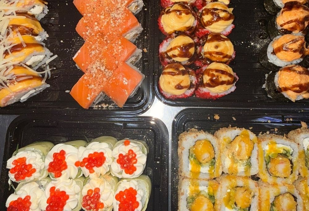 Состав:Нежная креветка,Фила лосось чеддер,Экзотик,Каппа ролл с икрой,Темпо креветка,Запеченная острая креветка-48шт