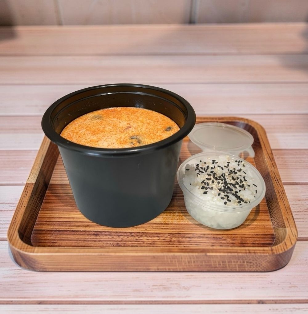 Состав:Бульон том ян,курица копченая,шампиньоны,черри,рис,кунжут.